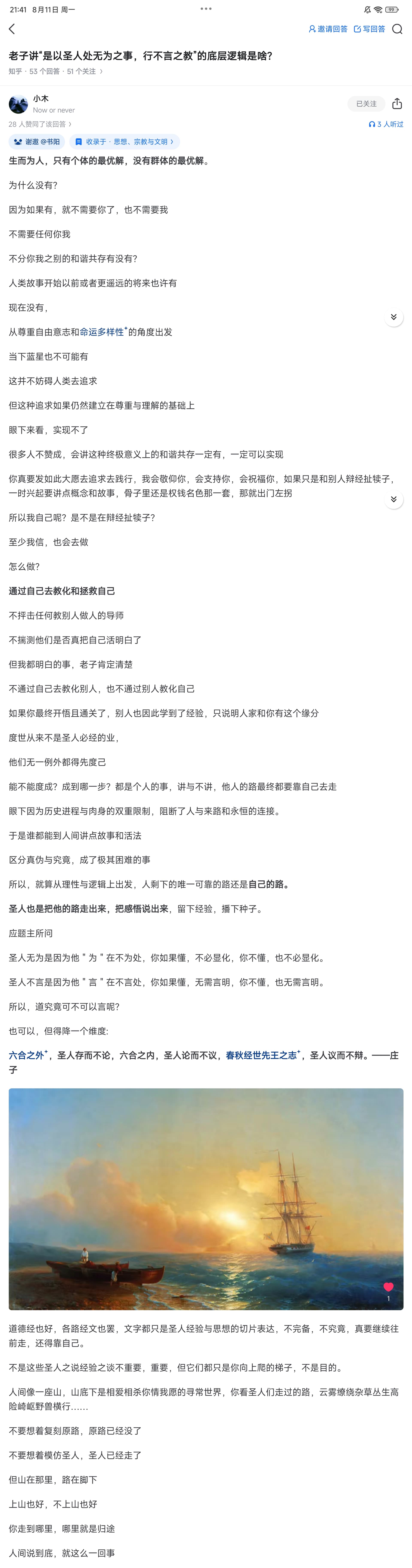 所以对于这一类有过体验而有一部分真知,虽然概括性回答了,但又并不傲慢,这类人我还是相信,将来有朝一日是可能回想而感慨曾经的自己的。