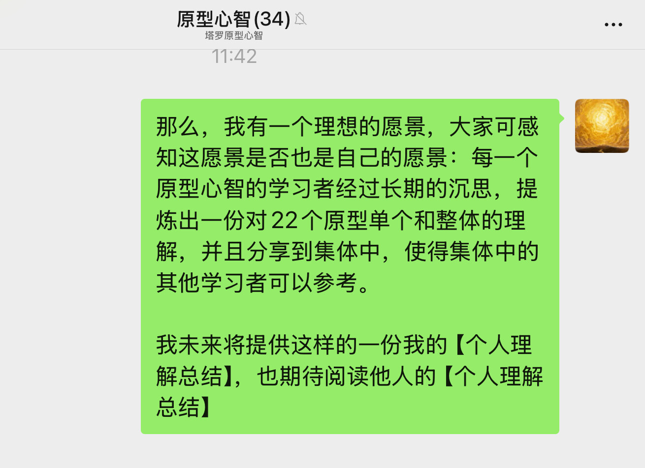 活动建议:每位原型心智学习者提供一份自己对原型的学习理解总结